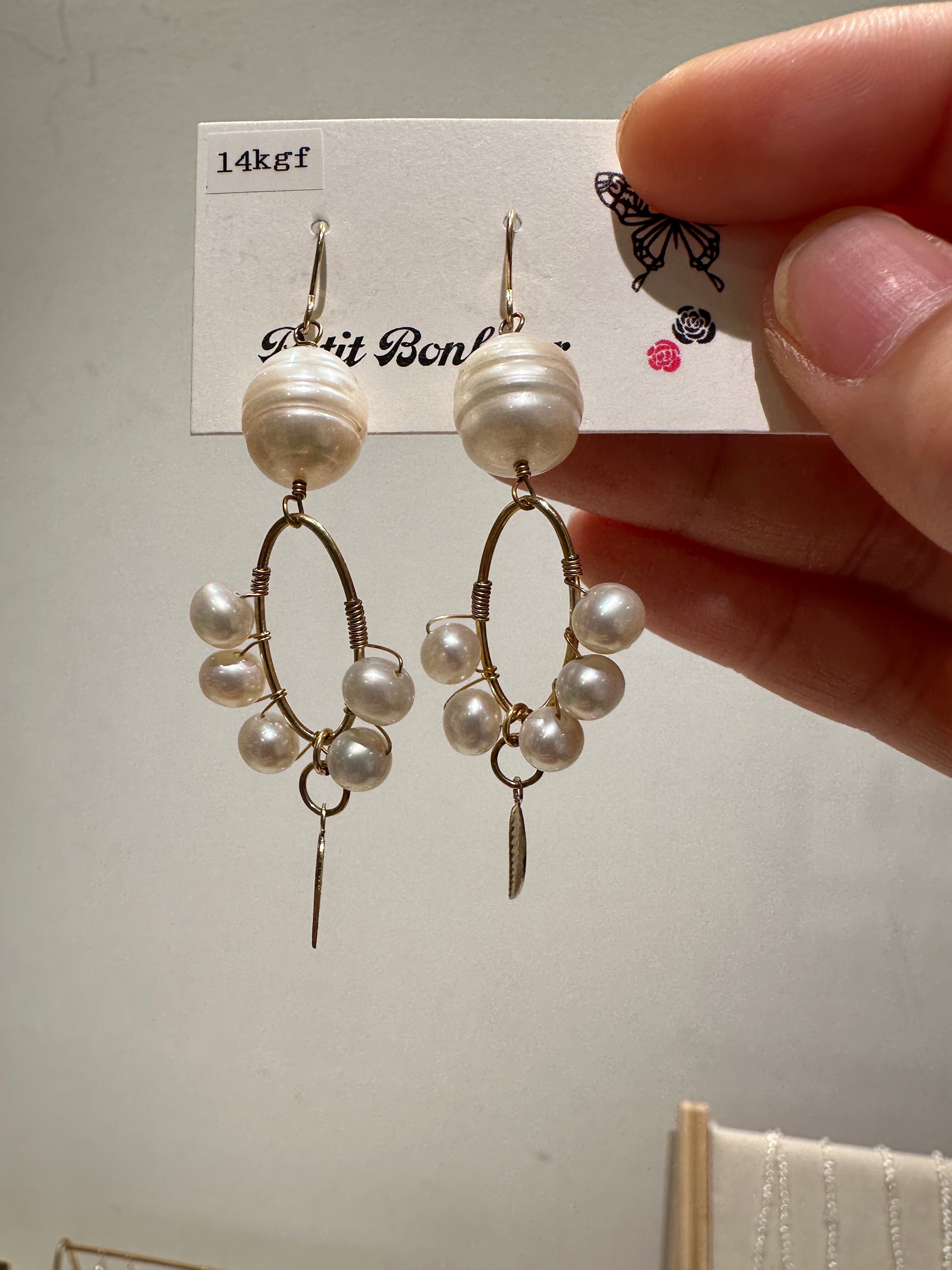 大粒の無核パールを贅沢に使用したピアスです。